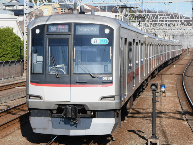 東急編成写真 5188F 更新日 2026年1月17日 公開日 2008年7月2日 東急編成写真/5080系 編成情報 所属路線 目黒線 配置検車区 元住吉検車区 車両数 8両編成 編成履歴 5188Fの編成表 車外表示器 種別・行先 フルカラーLED式 運行番号 白色LED式 車内表示器 液晶モニタ(全扉上に2機配置) その他 相鉄線直通対応 年別アーカイブ 2025年 2024年 2023年 2022年 2021年 2020年 2019年 2018年 2016年 2015年 2013年 2012年 2010年 2009年 2008年 2025年 2024年 2023年 2022年 2021年 2020年 2019年 2018年 2016年 2015年 2013年 2012年 2010年 2009年 2008年